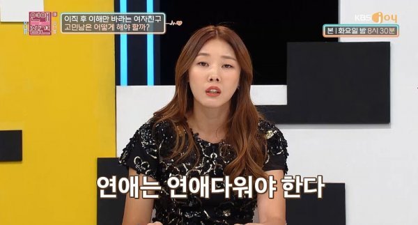 18일 방송된 KBS Joy \'연애의 참견 시즌3\' 146회에는 4세 연하 여자친구와 10개월째 연애 중인 고민남 사연이 소개됐다. 또 이날 커플 크리에이터 손민수·임라라가 스페셜 MC로 출연했다.