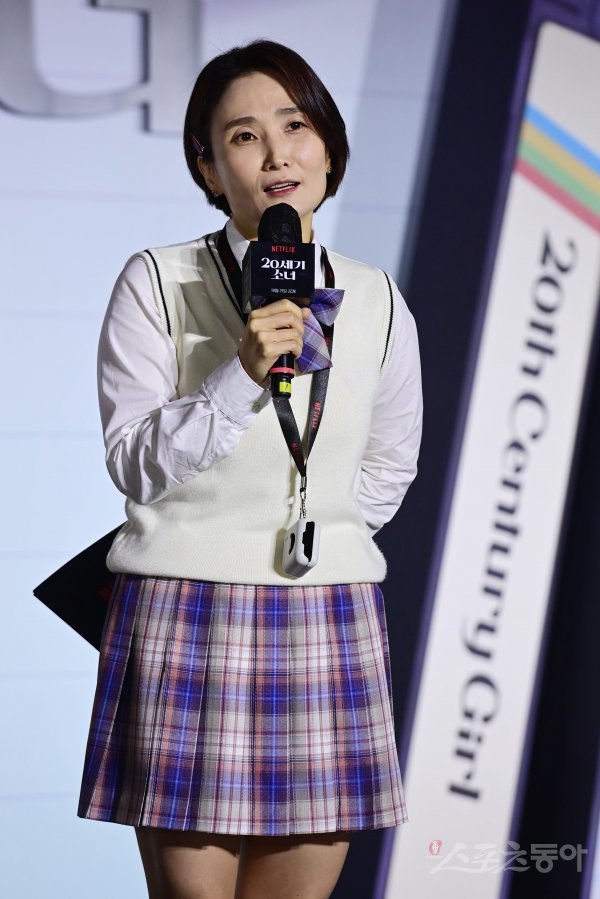 방송인 박경림이 19일 서울 용산구 CGV용산아이파크몰점에서 열린 넷플릭스 ‘20세기 소녀’ 제작보고회에서 MC를 맡아 진행하고 있다.