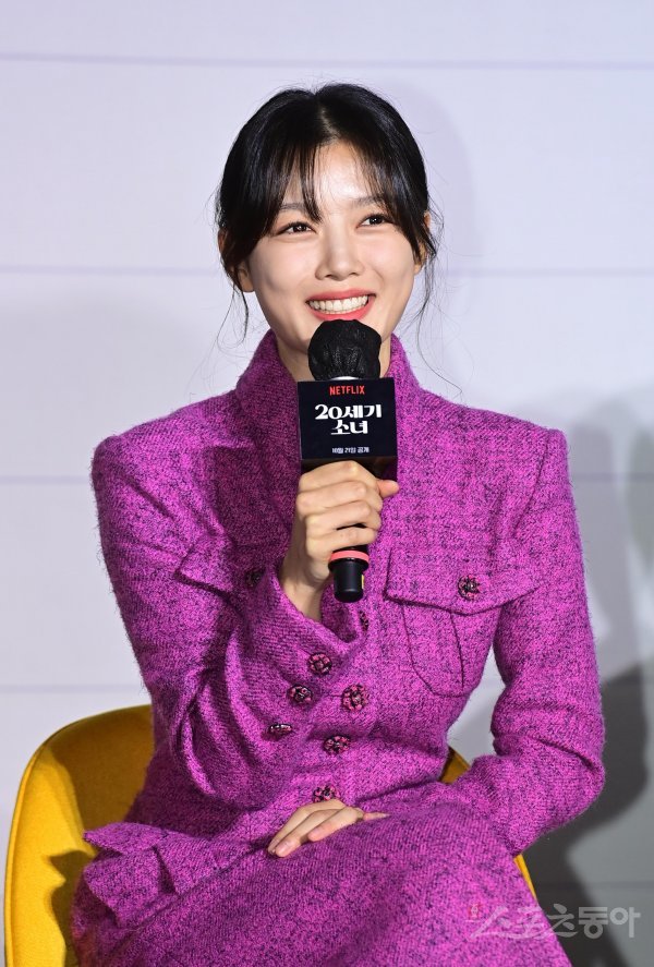 배우 김유정이 19일 서울 용산구 CGV용산아이파크몰점에서 열린 넷플릭스 ‘20세기 소녀’ 제작보고회에서 인사말을 하고 있다.
