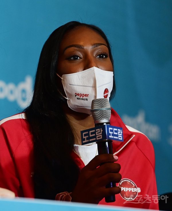 19일 서울 강남구 청담동 호텔리베라청담에서 열린 ‘도드람 2022-2023 V-리그’ 여자부 개막 미디어데이에서 페퍼저축은행 니아 리드가 인사말을 하고 있다.