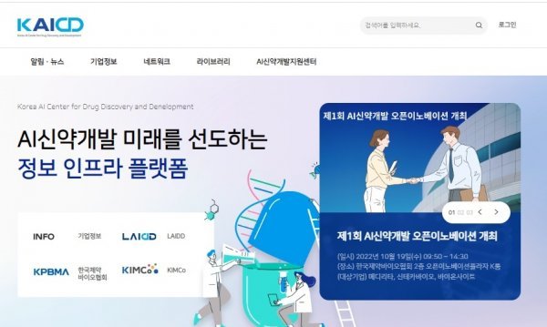 KAICD는 인공지능(AI) 신약개발 관련 정보를 제공하고 산·학·연 협력연구를 촉진하는 온라인 웹사이트다. 인공지능신약개발지원I센터는 제약바이오기업들의 AI 기반 신약개발에 필요한 자료 수집이 어려운 문제점을 개선하기 위해 양질의 관련 정보를 취합한 홈페이지 KAICD를 구축했다. KAICD는 알림 및 뉴스, 기업정보, 네트워크, 라이브러리, 인공지능신약개발지원센터 소개 등으로 구성했다.