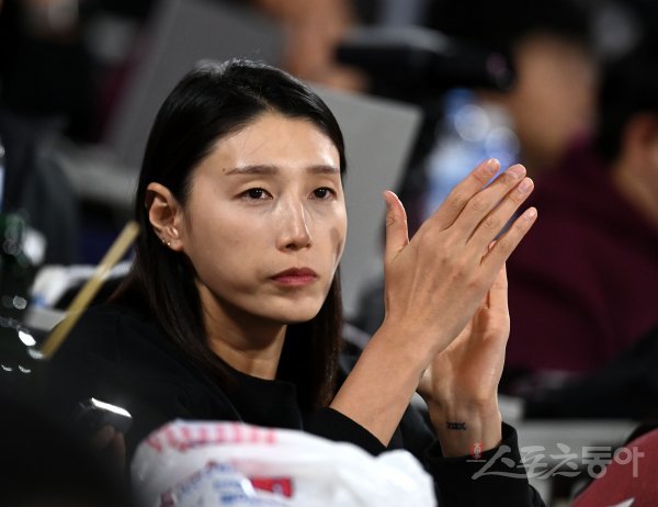 19일 수원KT위즈파크에서 ‘2022 신한은행 MY CAR KBO리그’ 준플레이오프 3차전 키움 히어로즈와 KT 위즈 경기가 열렸다. 여자배구 흥국생명 김연경이 야구장을 찾아 경기를 관전하고 있다.