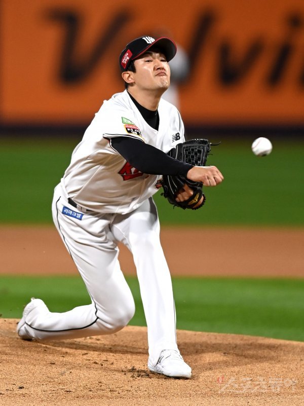 19일 수원KT위즈파크에서 ‘2022 신한은행 MY CAR KBO리그’ 준플레이오프 3차전 키움 히어로즈와 KT 위즈 경기가 열렸다. 선발 투수로 등판한 KT 고영표가 역투하고 있다.