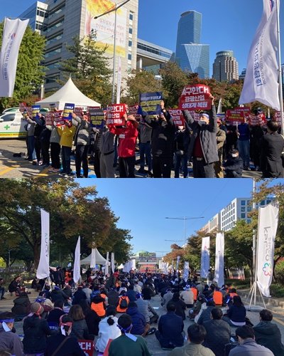 19일 여의도 국회의사당 앞에 관광업계 2000여명 모여