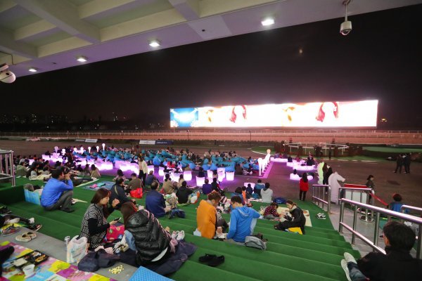 127m의 초대형 중계 전광판 ‘비전127’에서 진행하는 야간 영화제. 사진제공|한국마사회