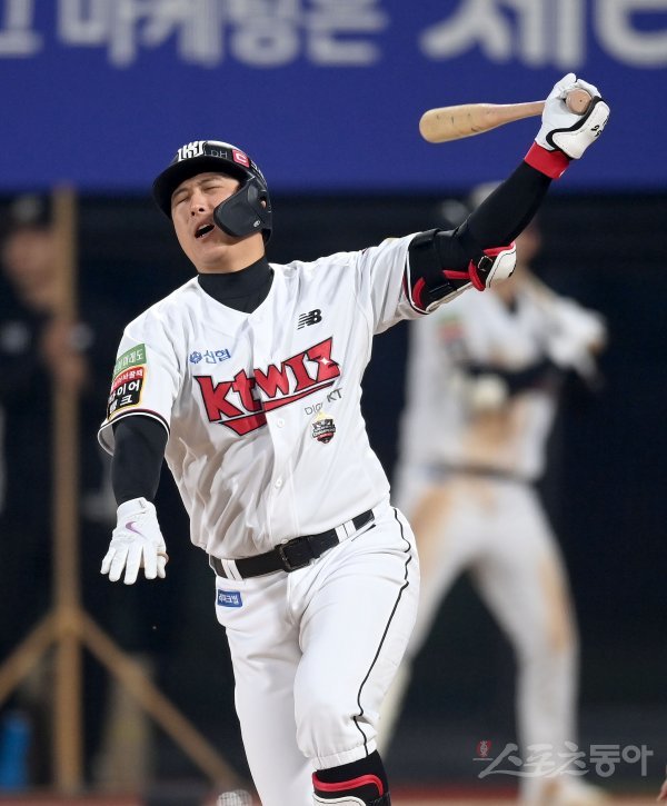 20일 수원KT위즈파크에서 ‘2022 신한은행 MY CAR KBO리그’ 준플레이오프 4차전 키움 히어로즈와 KT 위즈 경기가 열렸다. 5회말 2사 만루 KT 황재균이 외야 뜬공으로 아웃되고 있다.