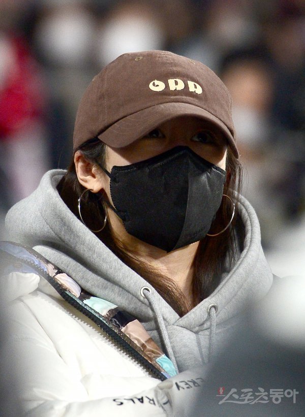 20일 수원KT위즈파크에서 ‘2022 신한은행 MY CAR KBO리그’ 준플레이오프 4차전 키움 히어로즈와 KT 위즈 경기가 열렸다. KT 황재균의 여자친구 티아라 지연이 관전하고 있다.