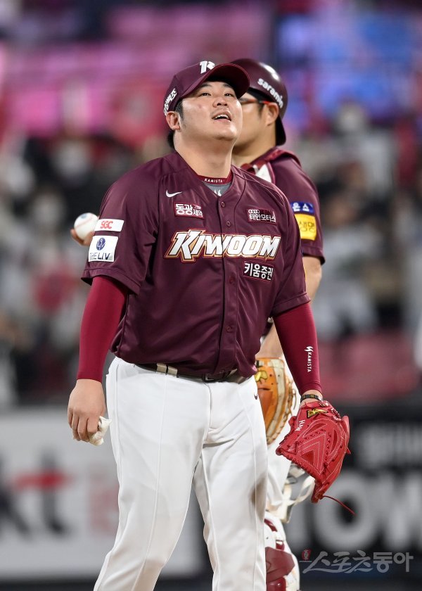 20일 수원KT위즈파크에서 ‘2022 신한은행 MY CAR KBO리그’ 준플레이오프 4차전 키움 히어로즈와 KT 위즈 경기가 열렸다. 5회말 2사 1,2루 상황에서 키움 한현희가 교체되고 있다.