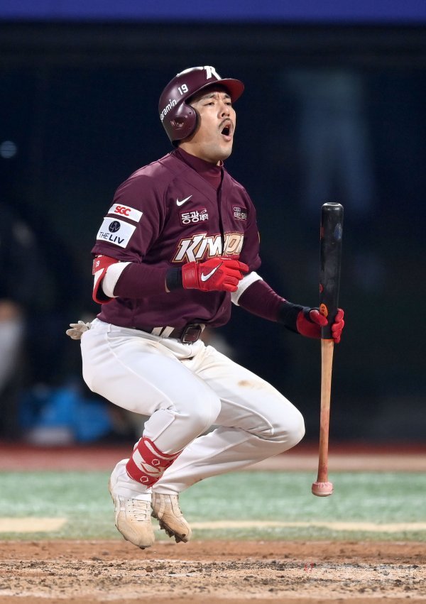 20일 수원KT위즈파크에서 ‘2022 신한은행 MY CAR KBO리그’ 준플레이오프 4차전 키움 히어로즈와 KT 위즈 경기가 열렸다. 5회초 무사 키움 이용규가 삼진 아웃을 당한 후 아쉬워하고 있다.