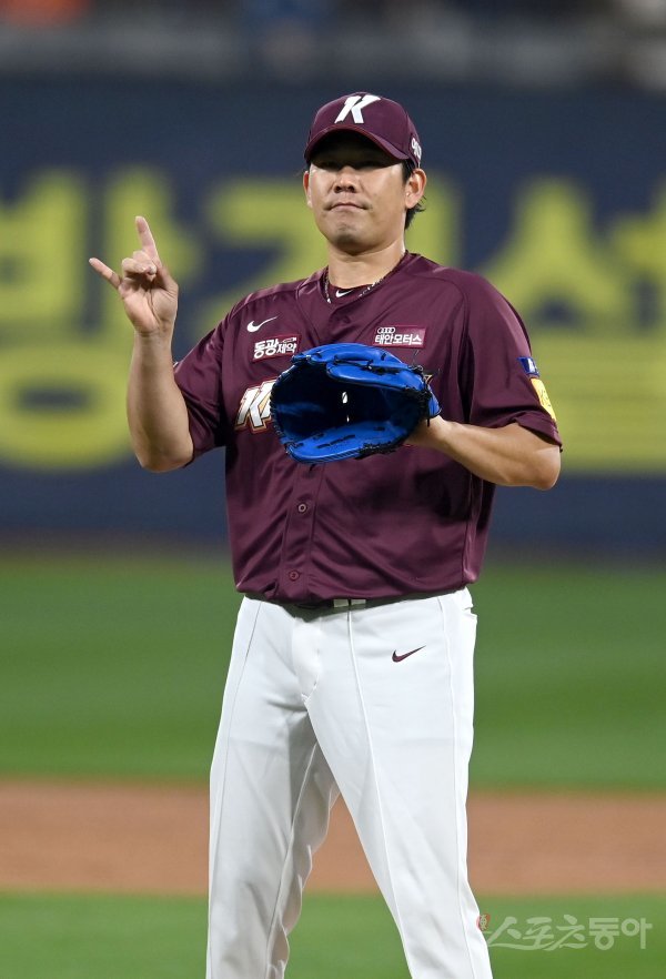20일 수원KT위즈파크에서 ‘2022 신한은행 MY CAR KBO리그’ 준플레이오프 4차전 키움 히어로즈와 KT 위즈 경기가 열렸다. 선발 투수로 등판한 키움 정찬헌이 1회말 안타를 허용한 후 포수에게 사인을 보내고 있다.