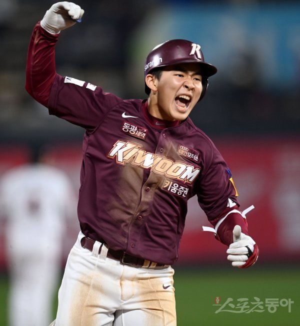 20일 수원KT위즈파크에서 ‘2022 신한은행 MY CAR KBO리그’ 준플레이오프 4차전 키움 히어로즈와 KT 위즈 경기가 열렸다. 8회초 2사 1루 키움 김휘집이 좌월 투런 홈런을 날리고 그라운드를 돌며 환호하고 있다.