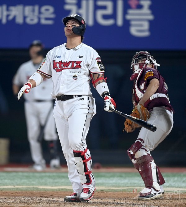 20일 수원KT위즈파크에서 ‘2022 신한은행 MY CAR KBO리그’ 준플레이오프 4차전 키움 히어로즈와 KT 위즈 경기가 열렸다. 8회말 1사 1루 KT 박병호가 좌측 펜스에 맞는 안타를 날리고 있다.