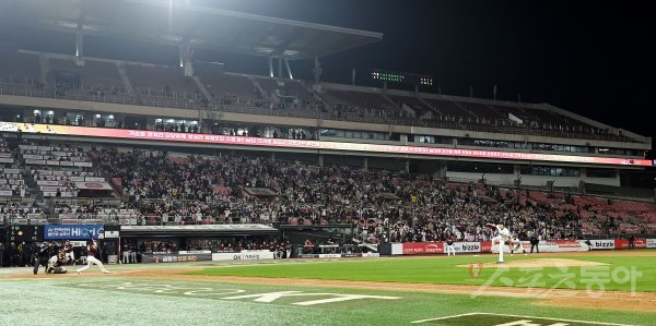 20일 경기도 수원 kt위즈파크에서 ‘2022 신한은행 SOL KBO리그’ kt 위즈와 키움 히어로즈의 준PO 4차전 경기가 열렸다. 내야 2층 관중석이 텅 비어 있다.