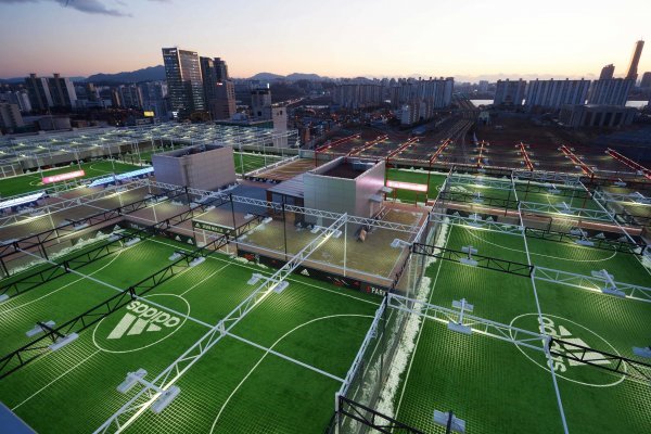 서울 용산 HDC아이파크몰이 옥상에 위치한 ‘아디다스 더베이스 풋살장’(사진)을 통해 차범근 축구교실을 지원한다.