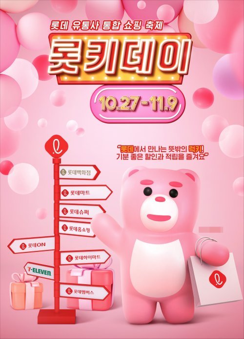 롯데 유통군이 27일부터 11월 9일까지 쇼핑 축제 ‘롯키데이’를 진행한다. 롯키는 ‘롯데’와 행운을 뜻하는 ‘럭키’의 합성어다. 롯데 유통 계열사와 함께 행운이 가득한 쇼핑 축제를 즐기자는 의미다. 롯데백화점, 롯데마트, 롯데슈퍼, 롯데온(e커머스), 코리아세븐(편의점), 롯데홈쇼핑, 롯데하이마트 등이 참여한다. 이번 행사에 행운을 안겨줄 메신저로 ‘벨리곰’이 선정됐다.