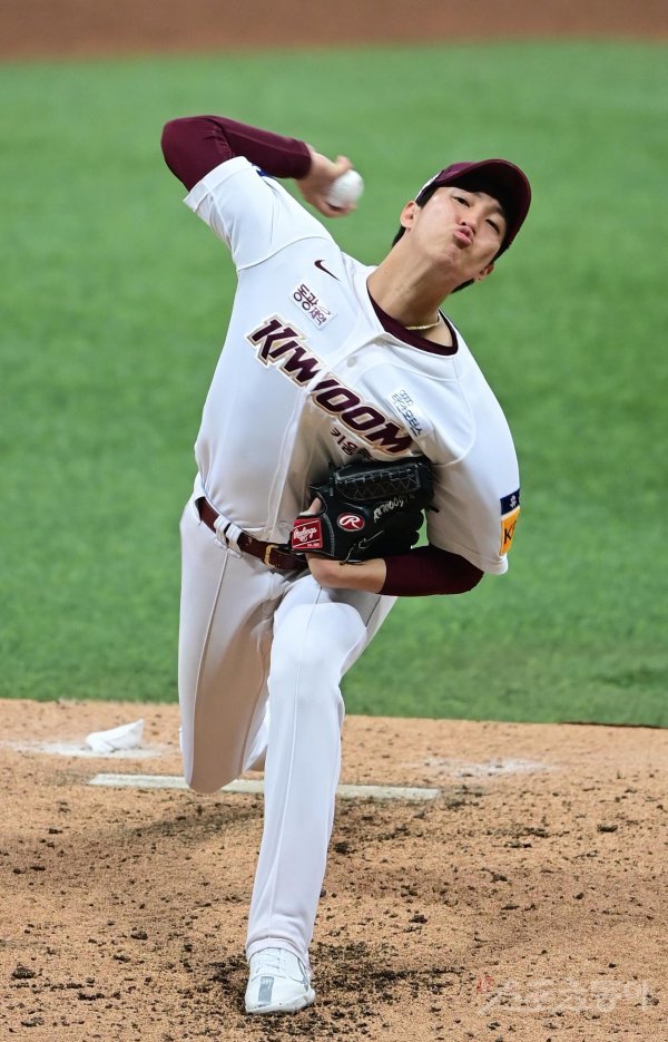 22일 서울 고척스카이돔에서 열린 ‘2022 신한은행 SOL KBO리그’ 준플레이오프 5차전 키움 히어로즈와 KT 위즈의 경기에서 선발 투수로 마운드에 오른 키움 안우진이 역투하고 있다.