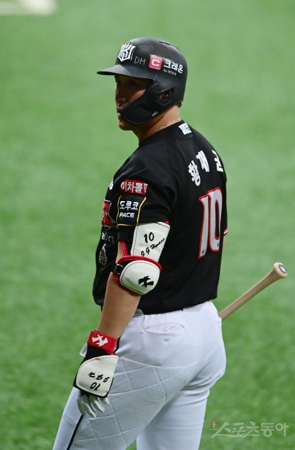 22일 서울 고척스카이돔에서 열린 ‘2022 신한은행 SOL KBO리그’ 준플레이오프 5차전 키움 히어로즈와 KT 위즈의 경기에서 2회초 무사 KT 황재균이 삼진 아웃을 당한 후 더그아웃으로 향하고 있다.