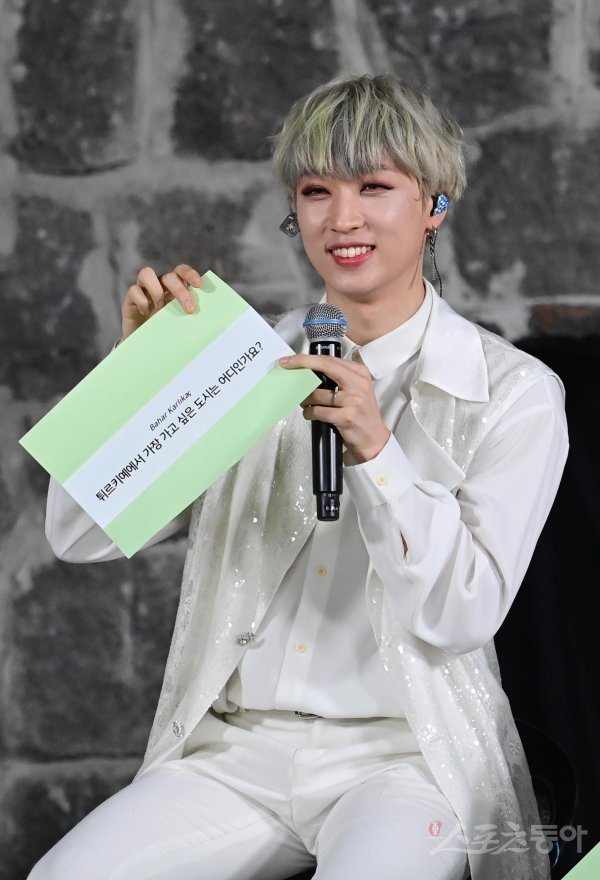 그룹 킹덤이 22일 고양 덕양구 대덕동 한 스튜디오에서 열린 주튀르키예한국문화원 개원 11주년 킹덤 케이팝 온라인 콘서트에서 팬들의 질문에 답하고 있다. 한국과 튀르키예 수교 65주년을 맞는 해인 올해는 형제의 나라라고 부를 만큼 친밀한 관계를 맺고 있다. 양국 문화에 대해 깊이 이해하고 가까워지는 기회로 주튀르키예한국문화원 유튜브를 통해 온라인 콘서트가 열렸다.