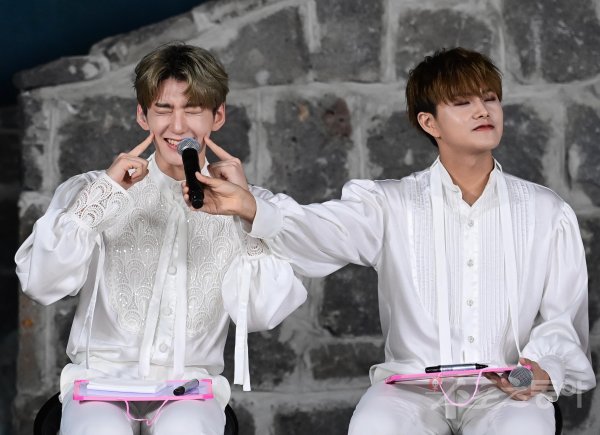 그룹 킹덤 훤이 22일 고양 덕양구 대덕동 한 스튜디오에서 열린 주튀르키예한국문화원 개원 11주년 킹덤 케이팝 온라인 콘서트에서 카메라를 향해 애교 포즈를 취하고 있다. 한국과 튀르키예 수교 65주년을 맞는 해인 올해는 형제의 나라라고 부를 만큼 친밀한 관계를 맺고 있다. 양국 문화에 대해 깊이 이해하고 가까워지는 기회로 주튀르키예한국문화원 유튜브를 통해 온라인 콘서트가 열렸다.