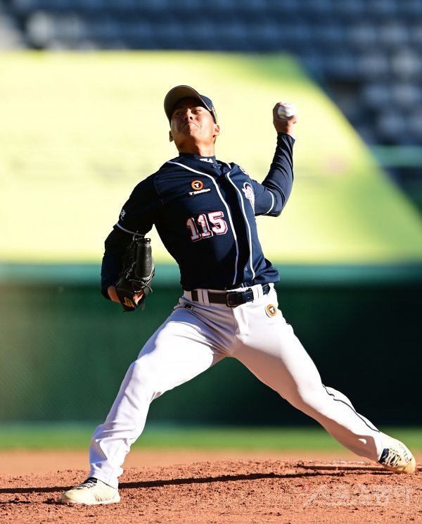 23일 인천 SSG랜더스필드에서 열린 KBO리그 SSG 랜더스와 두산 베어스의 연습경기에서 5회말 두산 김호준이 교체로 마운드에 올라 역투하고 있다.