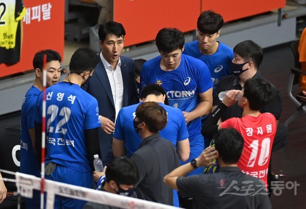 23일 안산상록수체육관에서 열린 ‘2022~2023 도드람 V-리그’ 남자부 OK금융그룹과 한국전력 경기에서 한국전력 권영민 감독이 작전 지시를 하고 있다.