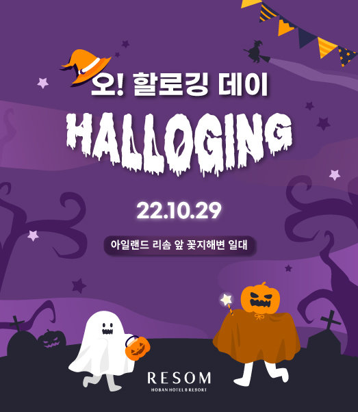 호반호텔앤리조트의 리솜리조트가 29일 아일랜드 리솜에서 ‘오! 할로깅 데이’를 진행한다.‘할로깅’은 핼러윈과 쓰레기를 주우며 달리거나 걷는 플로깅(Flogging)을 합친 단어로 재미와 환경활동을 결합한 이벤트다. 오리온과 협업한 야간 행사로 핼러윈 분장과 복장을 하고 아일랜드 리솜이 있는 태안 꽃지해변 일대를 걸으며 쓰레기를 줍는다. 29일 오후 5시 반부터 한 시간 동안 진행한다.
