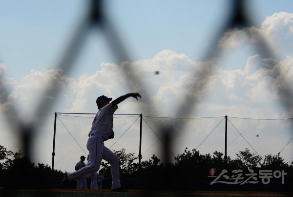 24일 이천 두산베어스파크에서 열린 두산 베어스의 마무리 캠프에서 선수들이 캐치볼을 하고 있다.