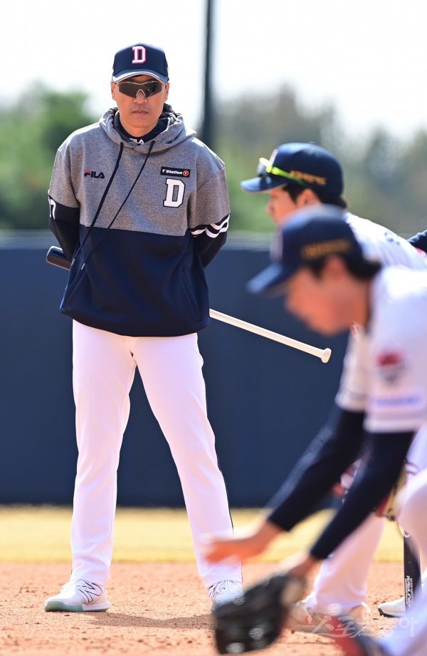 24일 이천 두산베어스파크에서 열린 두산 베어스의 마무리 캠프에서 두산 이승엽 감독이 선수들의 훈련을 지켜보고 있다.