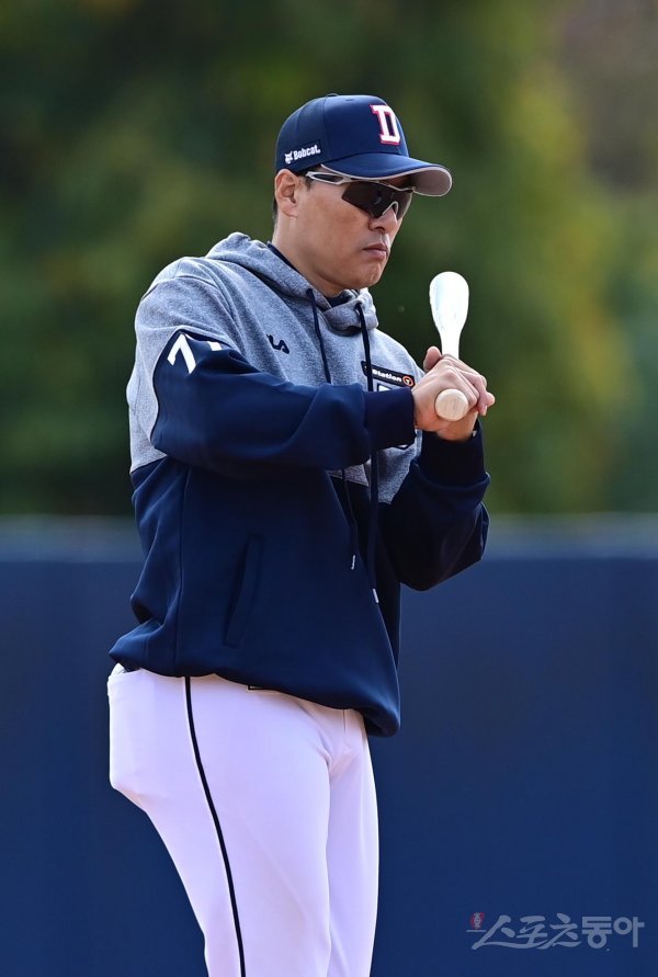 24일 이천 두산베어스파크에서 열린 두산 베어스의 마무리 캠프에서 두산 이승엽 감독이 스윙을 하고 있다.