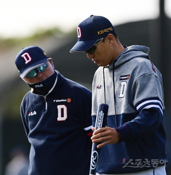 24일 이천 두산베어스파크에서 열린 두산 베어스의 마무리 캠프에서 두산 이승엽 감독과 이정훈 2군 감독이 이야기를 하고 있다.
