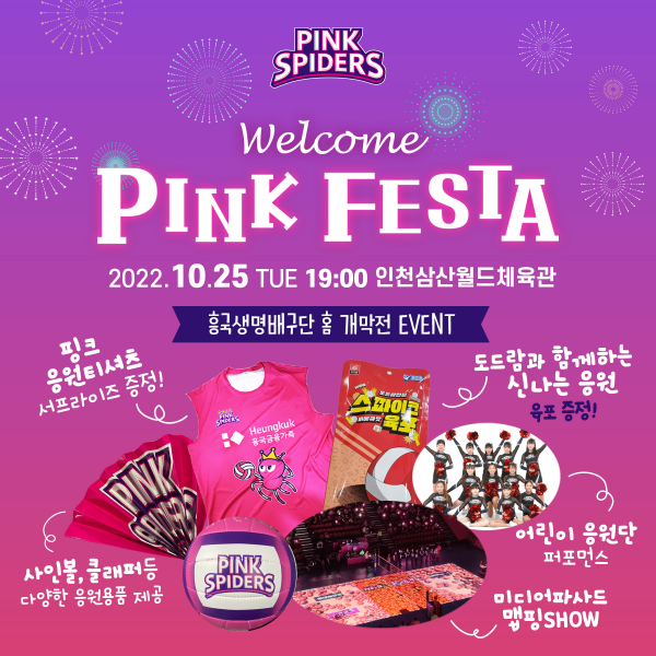 여자 프로배구 흥국생명 핑크스파이더스가 2022-23시즌 홈 개막 경기를 맞이하여 다양한 이벤트를 진행한다.