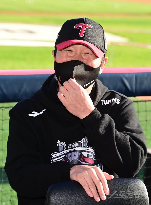 24일 서울 잠실야구장에서 열린 ‘2022 신한은행 SOL KBO리그’ 플레이오프 1차전 LG 트윈스와 키움 히어로즈의 경기에 앞서 LG 류지현 감독이 취재진과 인터뷰를 하고 있다.