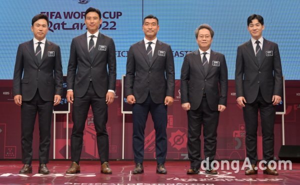 이광용 아나운서·구자철 선수·조원희 해설위원·한준희 해설위원·남현종 아나운서가 24일 오전 온라인으로 진행된 KBS 2022 카타르 월드컵 중계진 제작발표회에서 포토타임에 임하고 있다.