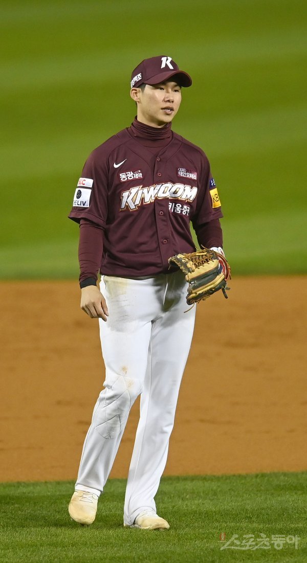 24일 서울 잠실야구장에서 ‘2022 신한은행 MY CAR KBO리그’ 플레이오프 1차전 키움 히어로즈와 LG 트윈스 경기가 열렸다. 2회말 1사 1,2루 LG 내야 땅볼 때 키움 김혜성이 송구 실책을 범한 후 아쉬워하고 있다.
