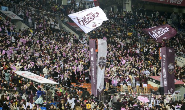 신한은행 MY CAR KBO리그‘ 플레이오프 1차전 키움 히어로즈와 LG 트윈스 경기가 열렸다. 키움 팬들이 응원을 펼치고 있다.