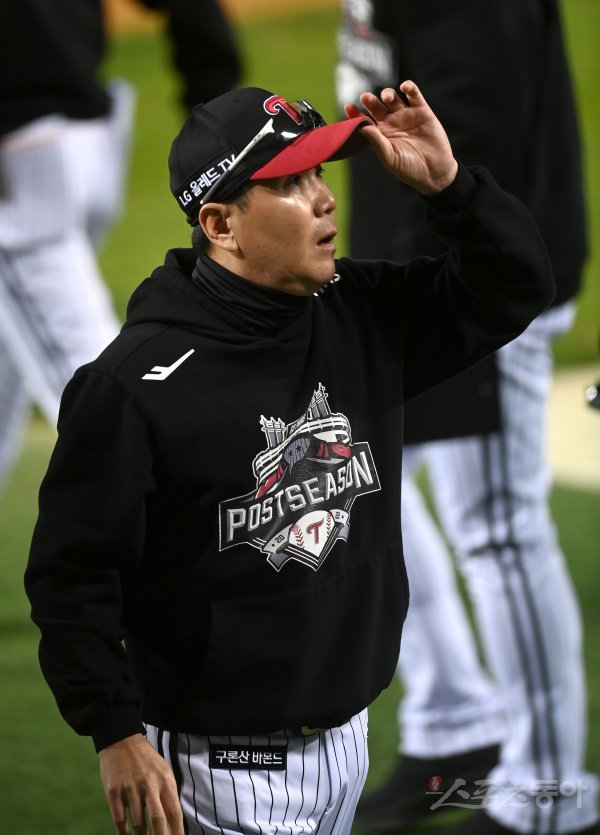 24일 서울 잠실야구장에서 ‘2022 신한은행 MY CAR KBO리그’ 플레이오프 1차전 키움 히어로즈와 LG 트윈스 경기가 열렸다. 6-3 승리를 거둔 후 LG 류지현 감독이 팬들에게 인사하고 있다.