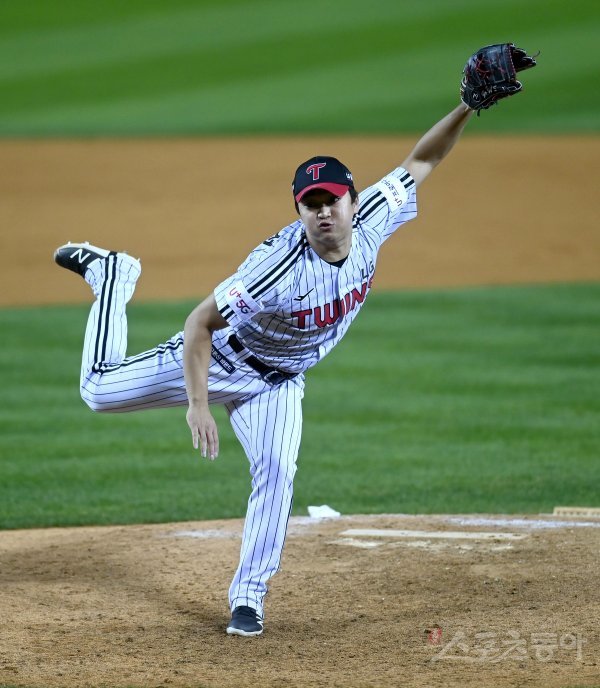 24일 서울 잠실야구장에서 ‘2022 신한은행 MY CAR KBO리그’ 플레이오프 1차전 키움 히어로즈와 LG 트윈스 경기가 열렸다. 9회초 등판해 1이닝을 무실점으로 막으며 6-3 승리를 지킨 LG 고우석이 역투하고 있다.