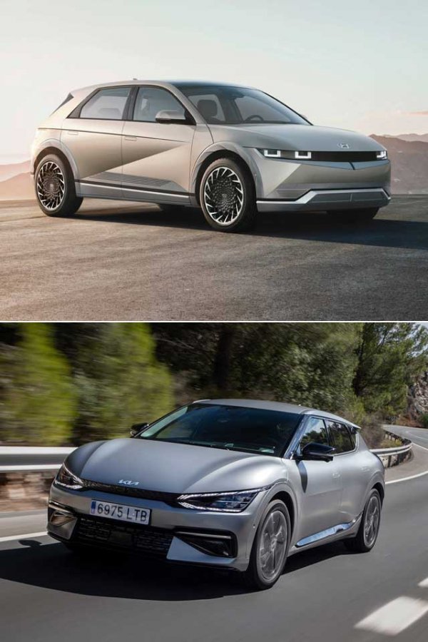 모터트렌드가 발표하는 2023년 ‘올해의 SUV’에 선정된 현대차 아이오닉 5(위)와 독일 유력 자동차 전문지 비교 평가에서 아우디 Q4 e-트론을 압도한 기아 EV6. 사진제공|현대차그룹