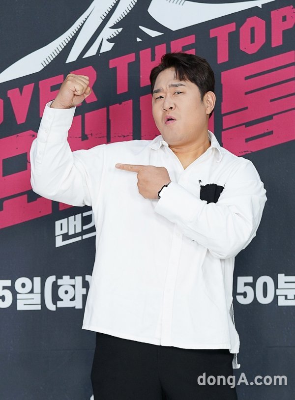 문세윤이 25일 오전 11시 진행된 JTBC 신규 예능프로그램 ‘오버 더 톱-맨즈 챔피언십’ 제작발표회에서 포즈를 취하고 있다.