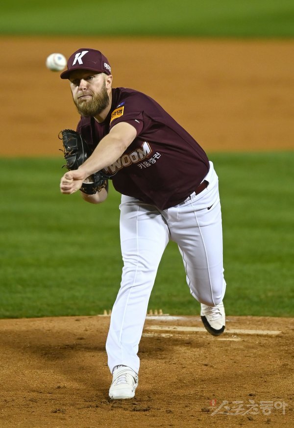 25일 서울 잠실야구장에서 ‘2022 신한은행 MY CAR KBO리그’ 플레이오프 2차전 키움 히어로즈와 LG 트윈스 경기가 열렸다. 선발 투수로 등판한 키움 요키시가 역투하고 있다.