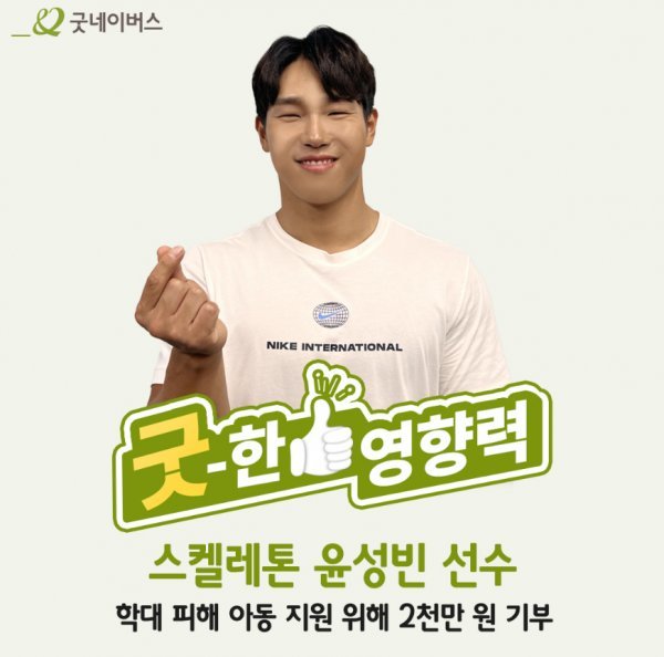 굿네이버스는 윤성빈의 후원금을 학대 피해 아동의 심리치료 지원에 사용할 예정이라고 전했다