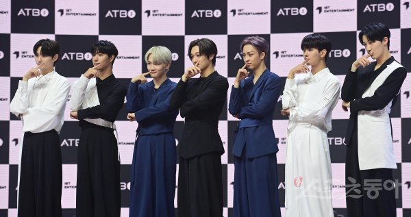 그룹 ATBO가 26일 서울 광진구 광장동 예스24 라이브홀에서 열린 2번째 미니앨범 ‘The Beginning : 始作(시작)’ 발매 기념 프레스 쇼케이스에서 포즈를 취하고 있다.