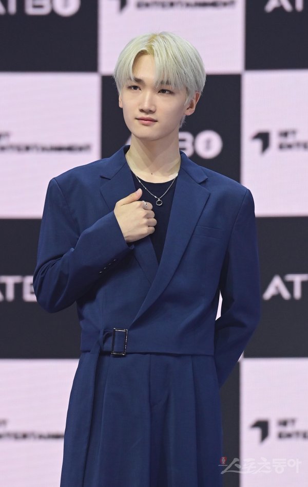 그룹 ATBO 김연규가 26일 서울 광진구 광장동 예스24 라이브홀에서 열린 2번째 미니앨범 ‘The Beginning : 始作(시작)’ 발매 기념 프레스 쇼케이스에서 포즈를 취하고 있다.