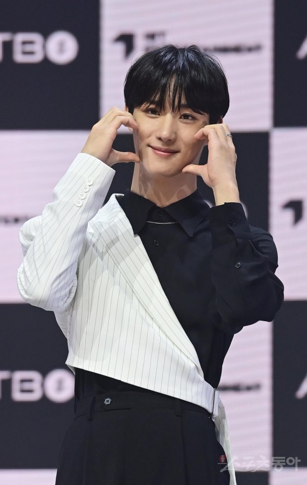 그룹 ATBO 정승환이 26일 서울 광진구 광장동 예스24 라이브홀에서 열린 2번째 미니앨범 ‘The Beginning : 始作(시작)’ 발매 기념 프레스 쇼케이스에서 포즈를 취하고 있다.