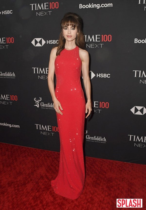 릴리 콜린스, 파격적인 레드 드레스로 뽐내는 반전매력 [포토화보]