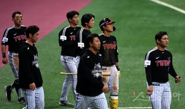 27일 서울 고척스카이돔에서 ‘2022 신한은행 SOL KBO리그’ 키움 히어로즈와 LG 트윈스의 PO 3차전 경기가 열렸다. 키움에 4-6으로 패한 LG 선수들이 그라운드로 향하고 있다.