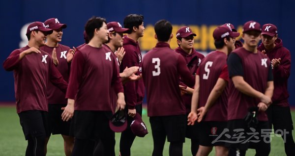 28일 서울 고척스카이돔에서 열린 ‘2022 신한은행 SOL KBO리그’ 플레이오프 4차전 키움 히어로즈와 LG 트윈스의 경기에 앞서 키움 선수들이 팀미팅을 마치며 손뼉을 치고 있다.