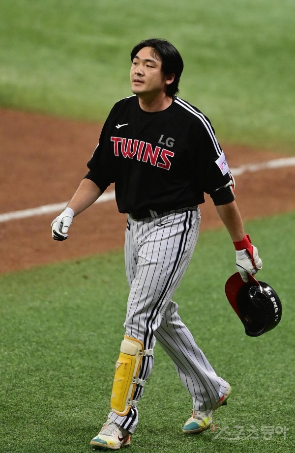 28일 서울 고척스카이돔에서 열린 ‘2022 신한은행 SOL KBO리그’ 플레이오프 4차전 키움 히어로즈와 LG 트윈스의 경기에서 7회초 2사 LG 이형종이 땅볼로 아웃된 후 아쉬워하고 있다.