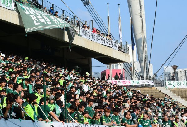 30일 전주월드컵경기장에서 열린 ‘2022 하나원큐 FA컵’ 결승 2차전 전북 현대와 FC서울의 경기에서 지난 밤 이태원 참사 추모를 위해 양 팀 팬들이 10분 동안 응원없이 경기를 지켜보고 있다.