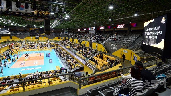 30일 의정부체육관에서 ‘2022~2023 도드람 V-리그’ 남자부 KB손해보험과 OK금융그룹 경기가 열렸다. 전날 밤 서울 용산구 이태원동 일대에서 일어난 압사 사고의 희생자을 추모하며 공식 응원 없이 경기가 진행되고 있다.